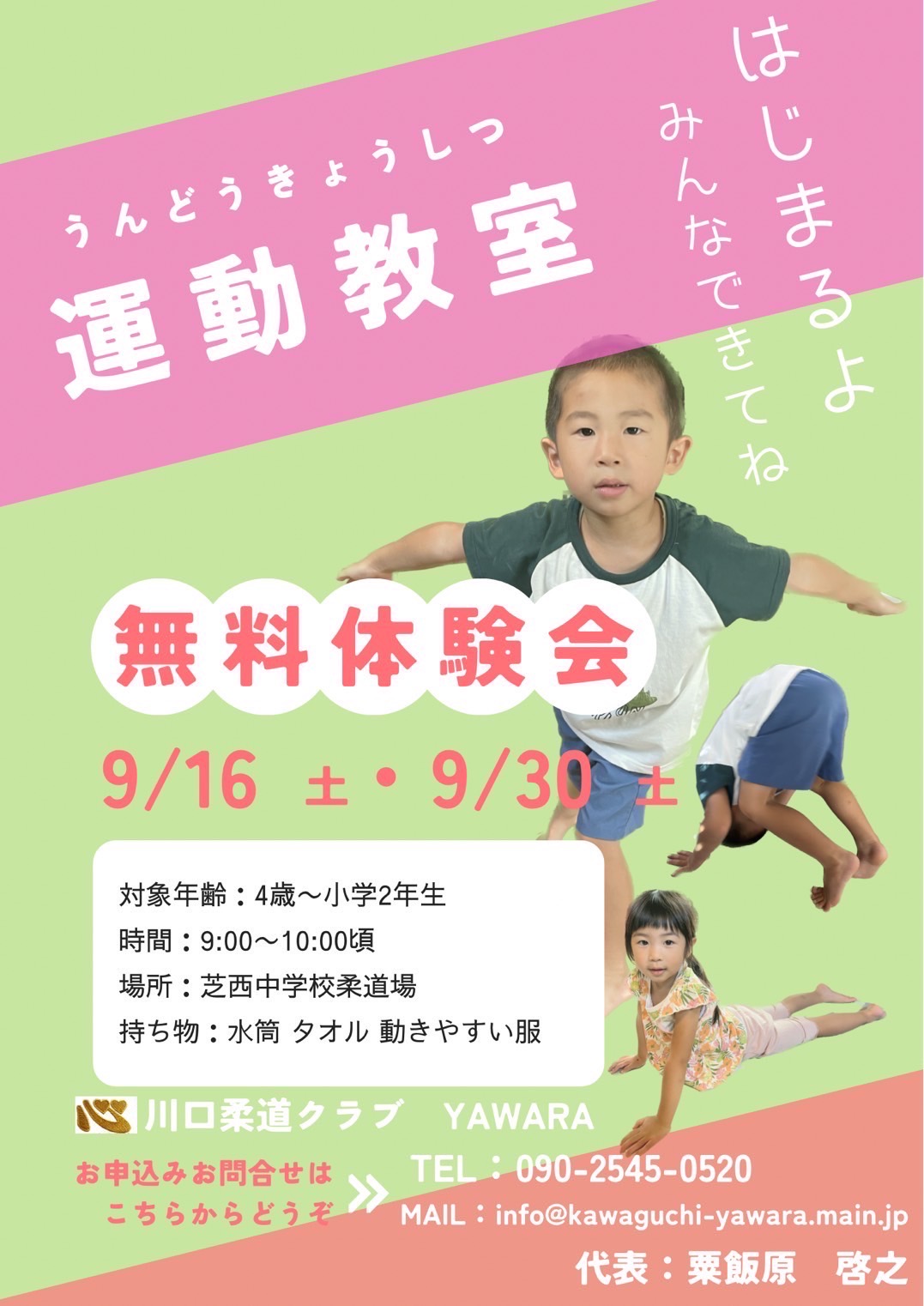 ※川口市内を中心に、近隣のさいたま市、戸田市、蕨市からも生徒たちが通っています。家族単位の会費設定ですので、兄弟(姉妹)で入門の場合も会費3,000円です。ちびっこ向け運動教室はこちら。