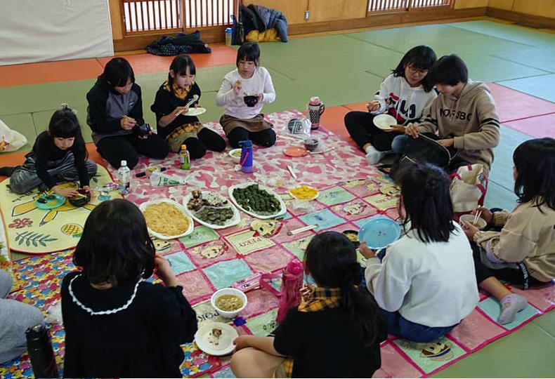 年の終わりは餅つき及び食トレで締めくくります。みんなで輪になって餅やうどんをたくさん食べます。
